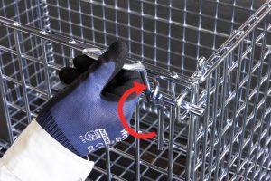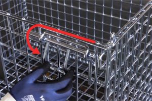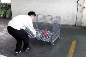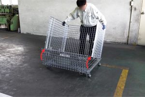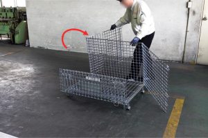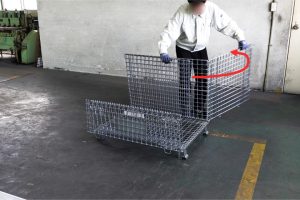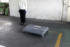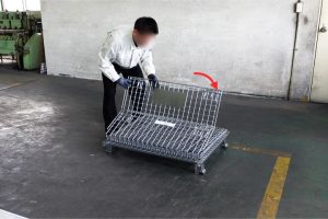 ボックスパレットを扱う際は軍手などで手指を保護し、挟み込ないように注意してください。